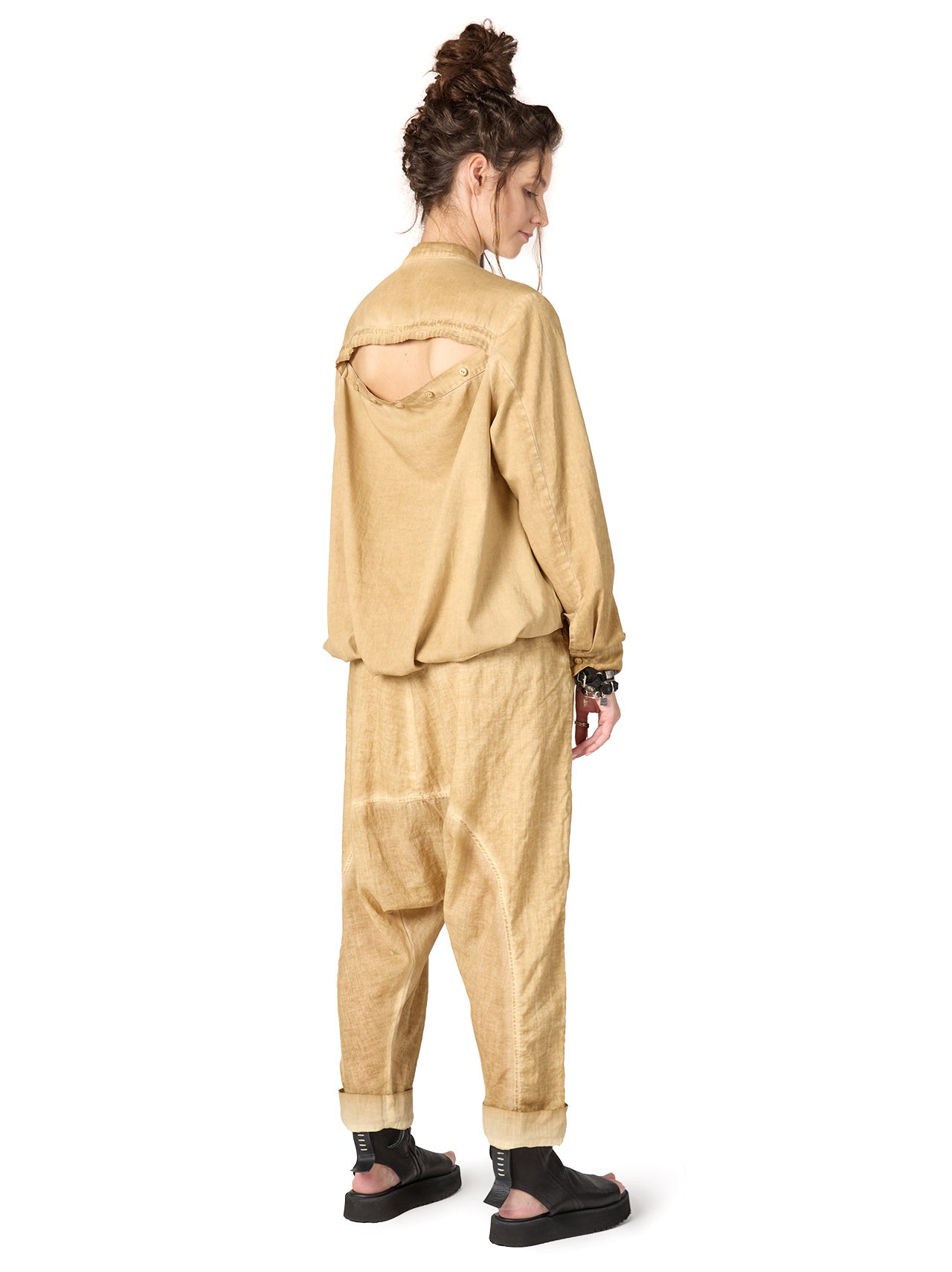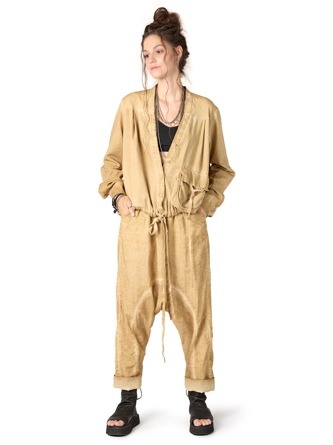 Effortlessly stylish and breathable, this dijon mustard set combines flowy cotton voile pants with a touch of modern utility with a satin-finished cotton blouse. The pants feature a relaxed dropped crotch, elastic waist, and side pockets for laid-back elegance, while the blouse elevates the look with refined details—like a drawstring hem, dipped back, and a statement cargo pocket—blending softness and structure in one chic silhouette.